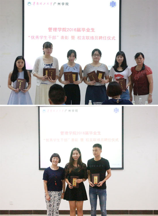活动伊始,苏来英副院长宣读《管理学院2016届优秀学生干部表彰决定》,对陈境川等52名同学在过去一年的学生工作中给予肯定和表彰;宣读《管理学院2016届校友工作联络员聘任决定》,决定聘任蔡淑芬等52名为管理学院2016届校友联络员,并寄语毕业生“希望各位校友联络员勿忘学校,继续关心母校的建设和发展,热心并支持校友工作,以高度的责任心和奉献精神为校友工作做贡献”。